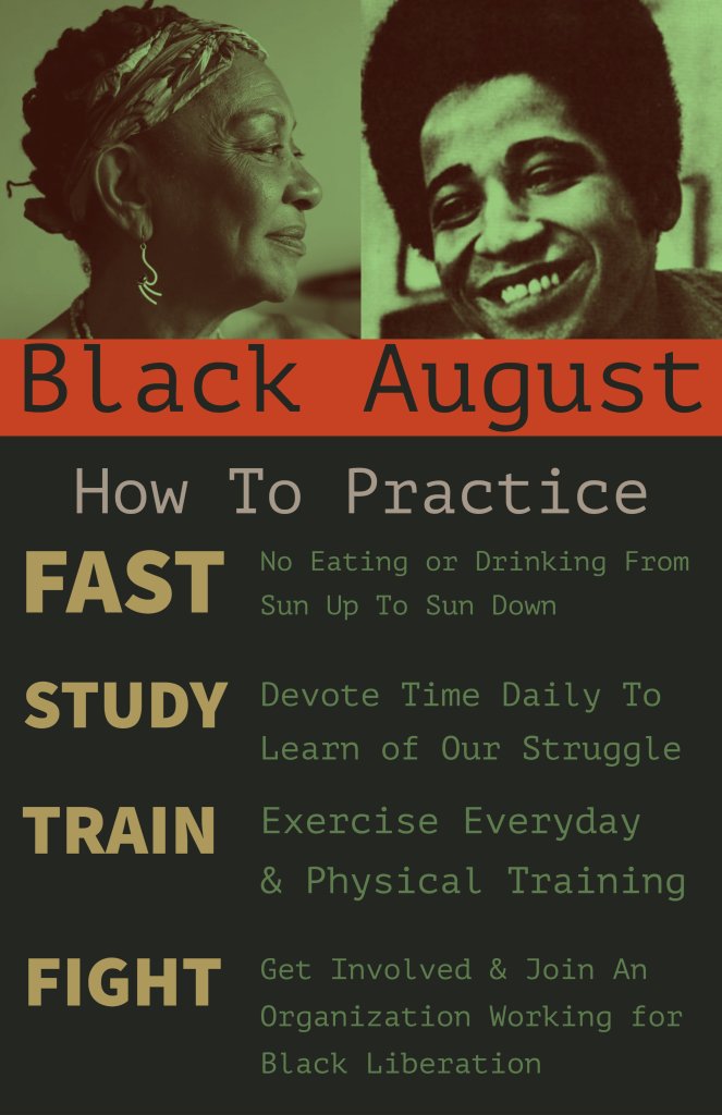 Starting in the U.S. California Prison system, Black August is an annual observance to commemorate Black Political Prisoners and African resistance efforts globally. There is a specific focus on condemning the mistreatment of Black prisoners, raising awareness around what and who Political Prisoners are, their current conditions, and the historical development of the Black Prisoner struggle in general. In addition, we take this time to reflect on lessons to be learned from African resistance, both past and present, while committing ourselves to either joining or lending support to current resistance efforts.
